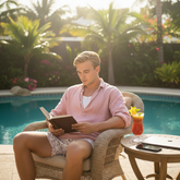 • Resort Chic: As pictured, wear it open over a white tank top with patterned swim shorts, perfect for poolside lounging or a beach stroll.